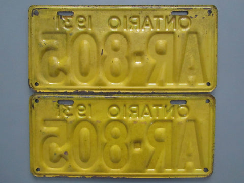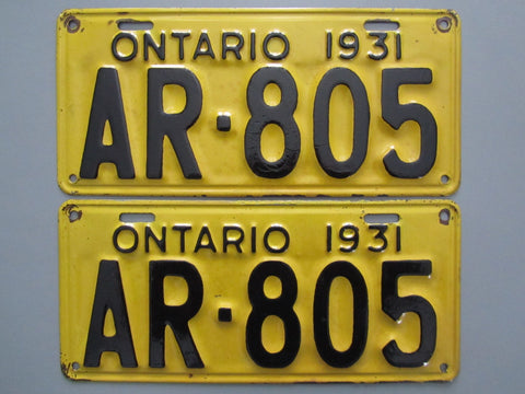 1931 YOM Clear Ontario License Plates