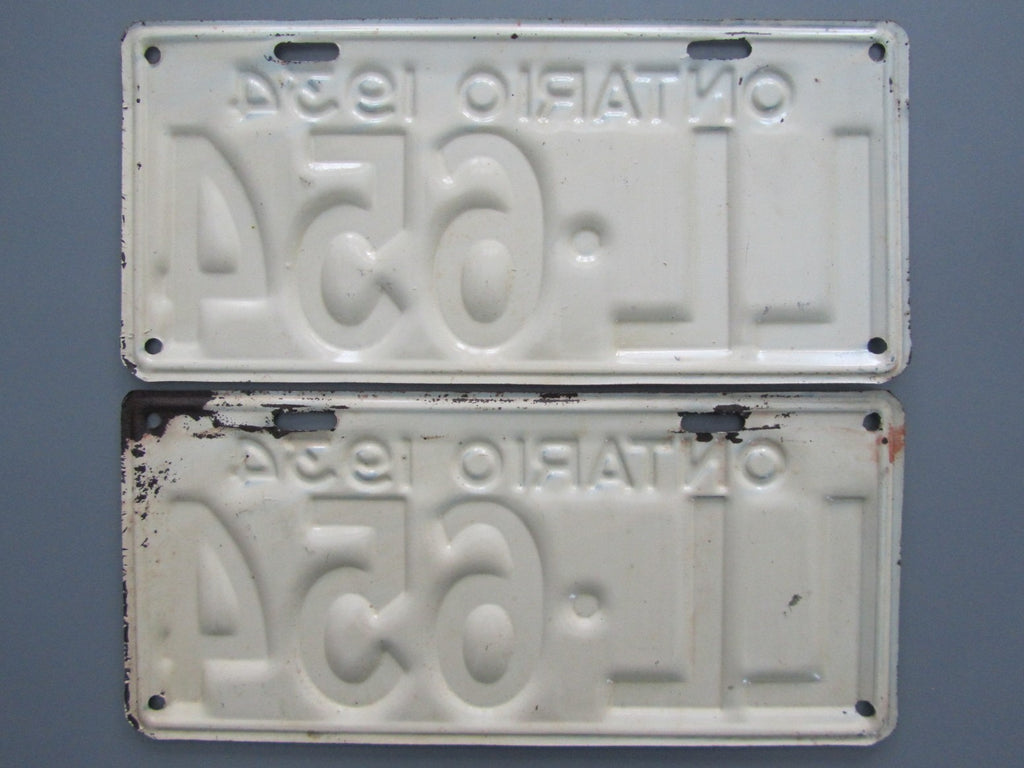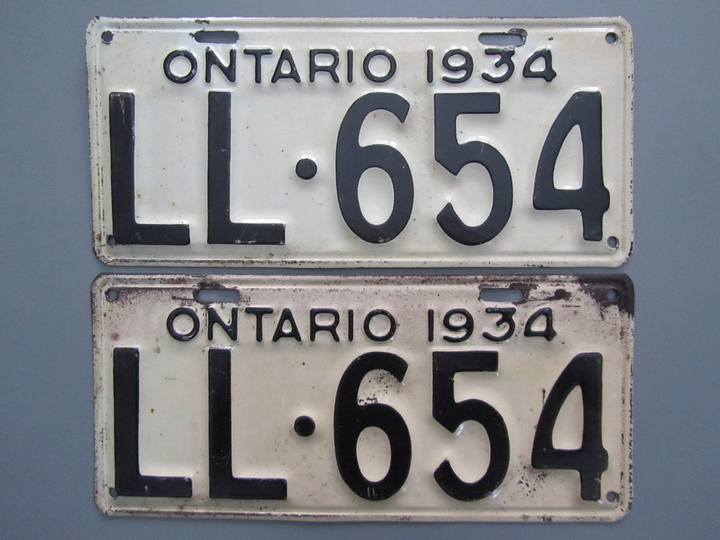 Here's an all-original pair from a tough year to find in good paint condition. Overall the plates have a perfect amount patina with some light rust on the top right corner of the lower plate pictured. Guaranteed MTO approval!