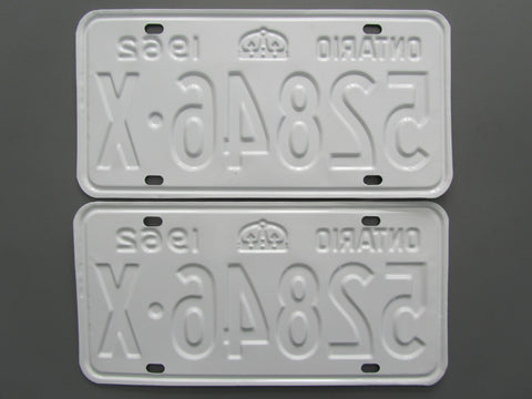 1962 YOM Clear Ontario License Plates