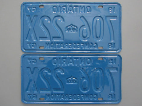 Fully restored pair. "X" plates were registered to station wagons during this era. Just some very slight evidence of past bends on some parts of the plates - almost not worth mentioning. Guaranteed MTO approval!