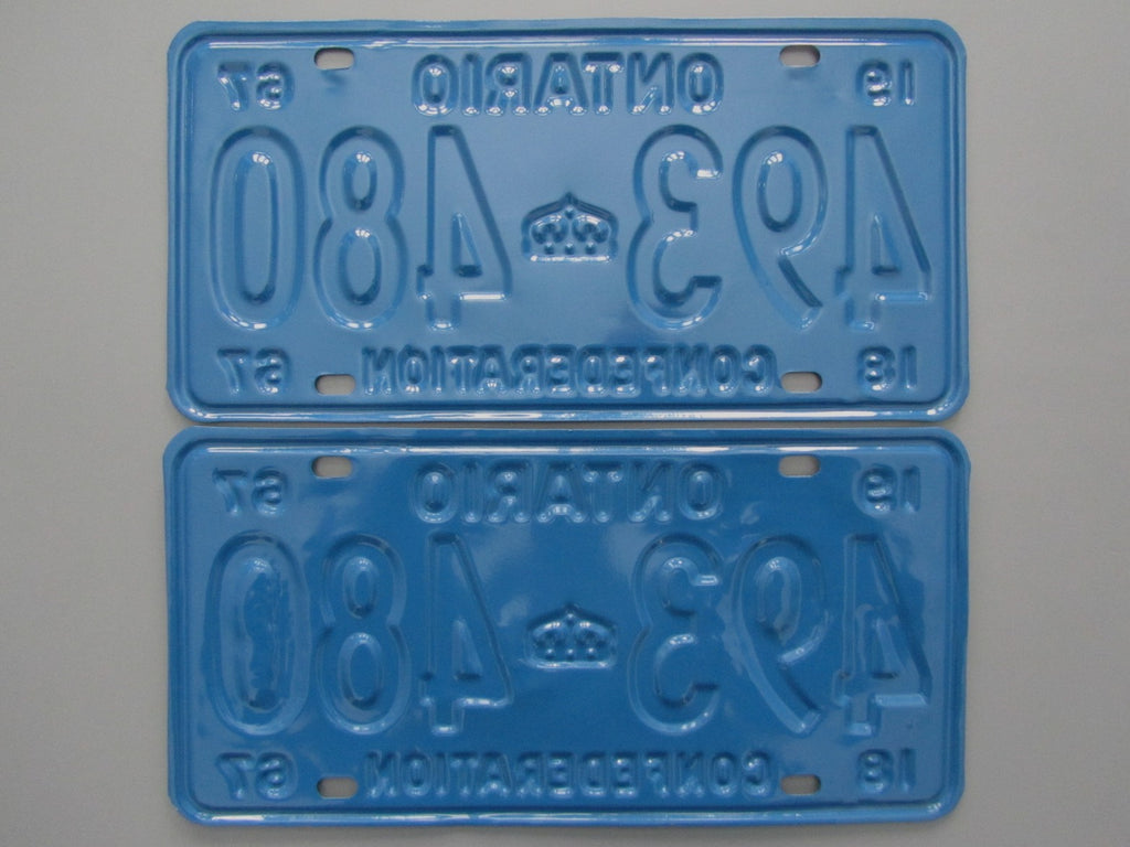 Restored pair. The lower plate has evidence of past bends on some parts of the plates - near the "93" and "80". Straightened as best possible and still looks great, just not 100% perfect. Priced accordingly. Guaranteed MTO approval!