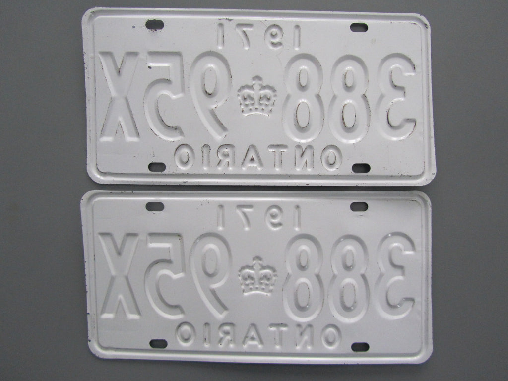 Original set with some minor wear - nice pair! "X" plates were registered to station wagons during this era. Guaranteed MTO approval!