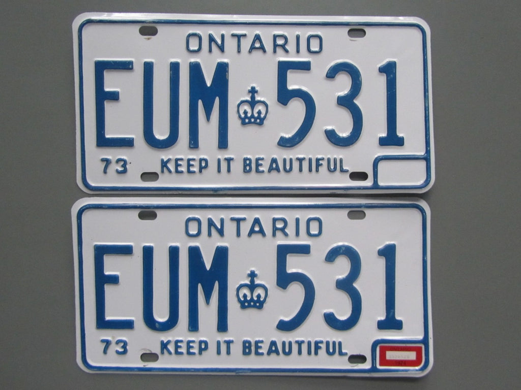 The YOM Program ends in '73 for cars and trucks, however this pair can be registered to a 1974 car under the Personalized Plate Program. Read about how to do this.
